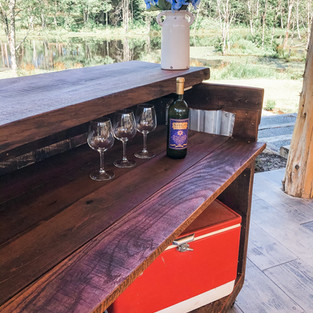 These photos were taken on the pavilion- the perfect spot for cocktail hour. Check out some other photos of the bar- we tried to make it as versatile as possible- the ledge under the top is low enough so wine glasses can comfortably be placed and the bottom is big enough for a keg or a cooler.